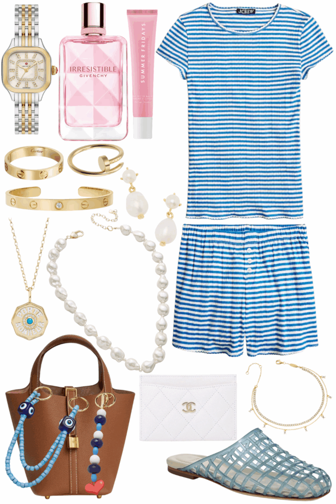 That striped short set is cute!